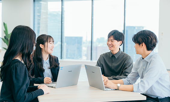 「時間や場所を選ばず、価値ある仕事で、自律して活躍している状態」を目指し、フレックスタイム制度や在宅勤務制度を導入し、多様な働き方を推進しています。